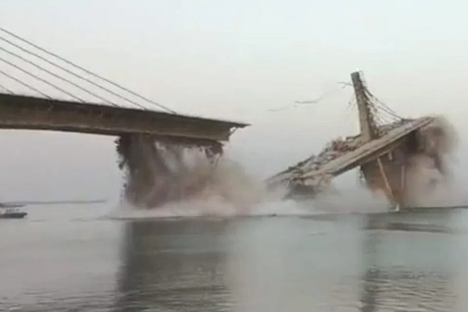இந்தியாவின் பீகார் மாநிலத்தில் கங்கை ஆற்றின் மேலே கட்டப்பட்டுவரும் பாலம் கடந்த 14 மாதங்களில் இரண்டாவது முறையாக நேற்று ஞாயிற்றுக்கிழமை மாலை இடிந்து விழுந்தது.