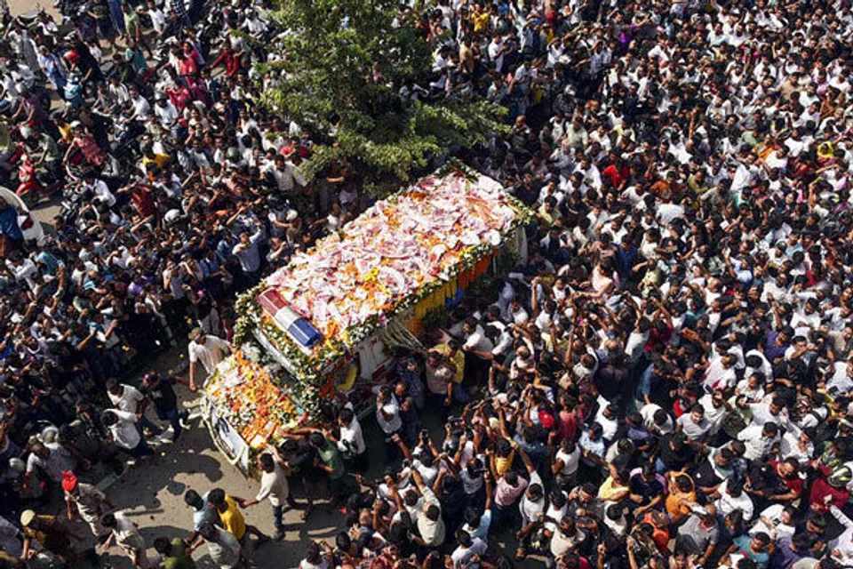 சிங்கப்பூரில் உடற்கூராய்வுக்குப் பிறகு விமானம் மூலம் இந்தியா கொண்டுவரப்பட்ட அவரது உடல், அசாம் தலைநகர் கவ்காத்தி மைதானத்தில் வைக்கப்பட்டு, லட்சக்கணக்கான மக்கள் அஞ்சலி செலுத்தினர்.