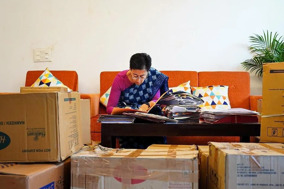 முதல்வர் இல்லத்திலிருந்து வெளியேற்றப்பட்ட நிலையில் திருவாட்டி அதிஷி தமது கல்காஜி குடியிருப்பில் இருந்தபடி பணிகளை மேற்கொண்டார். அங்கு தமது உடைமைகள் வைக்கப்பட்ட பெட்டிகளுக்கு நடுவே அமர்ந்து அரசுக் கோப்புகளில் அவர் கையெழுத்திட்டார். இந்தப் புகைப்படத்தை ஆம் ஆத்மியின் மாநிலங்களவை எம்.பி. சஞ்சய் சிங் தமது எக்ஸ் தளத்தில் வெளியிட்டுள்ளார்.