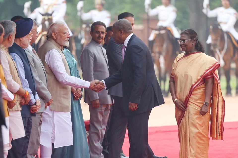 அவருக்கு இந்திய அதிபர் மாளிகையில் சிவப்புக் கம்பள வரவேற்பு அளிக்கப்பட்டது.
