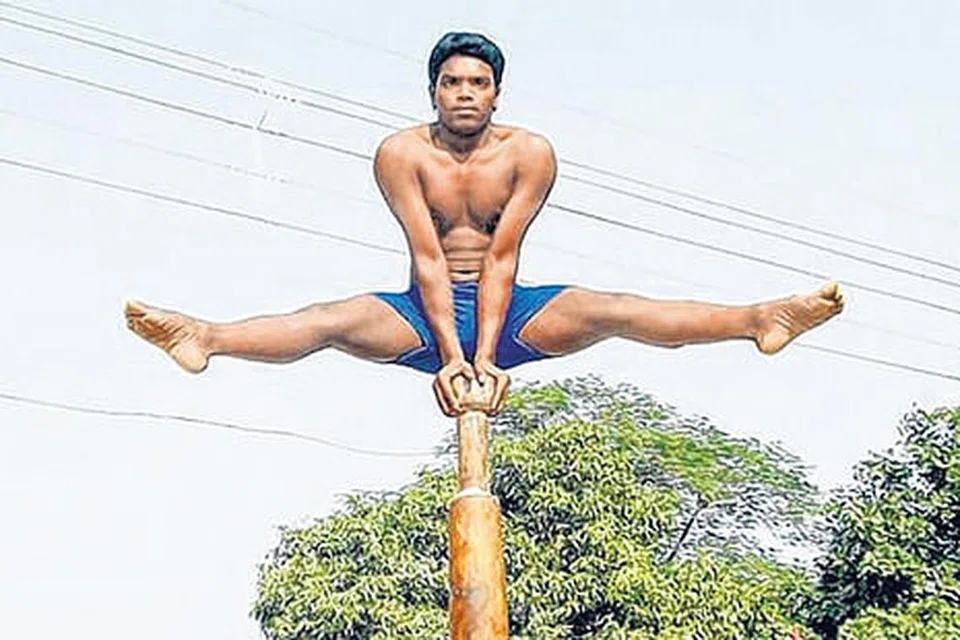 அதன் அடிப்பகுதியில் இருந்து உச்சி வரை சென்று ஆசனம், கரணம் போன்ற வீர, தீரச் செயல்கள் செய்வதாகும். படம்: இணையம்