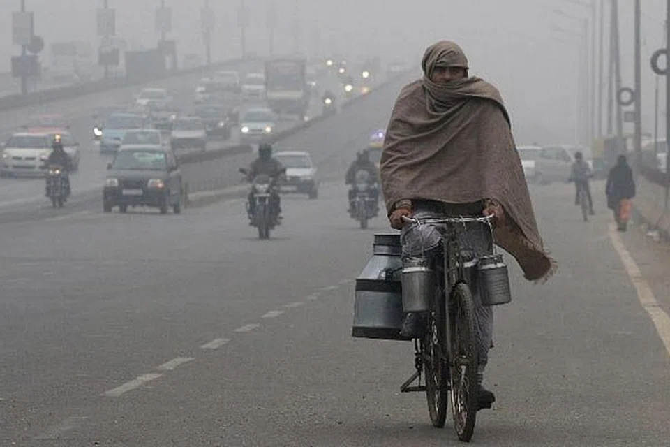 கடுமையான குளிர் அடித்தாலும் அதைப் பொருட்படுத்தாமல் அன்றாடப் பணியில் ஈடுபட்டுள்ள பால்காரர். படம்: ஏஎப்பி