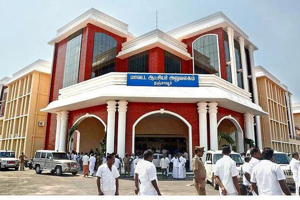 தஞ்சை: புதிதாகக் கட்டப்பட்ட ஆட்சியர் அலுவலகத்தின் ஒருபகுதி திடீரென இடிந்து விழுந்ததால் தஞ்சையில் பரபரப்பு ஏற்பட்டது. இக்கட்டடத்தை 9 மாதங்களுக்கு முன்புதான் முதல்வர் ஜெயலலிதா தலைமைச் செயலகத்தில் இருந்து காணொளி மூலம் திறந்து வைத்தார். இந்நிலையில் நேற்று காலை இக்கட்டடத்தின் மேற்கூரையின் ஒரு பகுதி இடிந்து விழுந்தது. நேற்று முன்தினம் இரவும் கூட, முக் கிய நுழைவாயில் அருகே மேற்கூரையின் சிமெண்ட் காரை இடிந்து விழுந்தது. கோப்புப்படம்