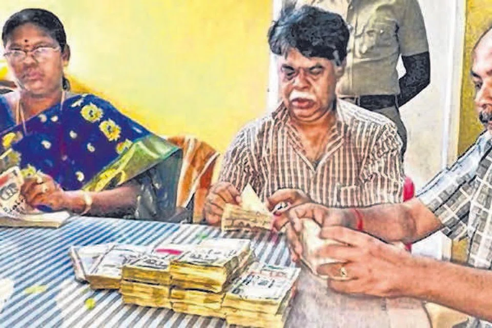 பறிமுதல் செய்யப்பட்ட ரொக்கப் பணத்தை எண்ணும் பறக்கும் படை அதிகாரிகள். படம்: ஊடகம்