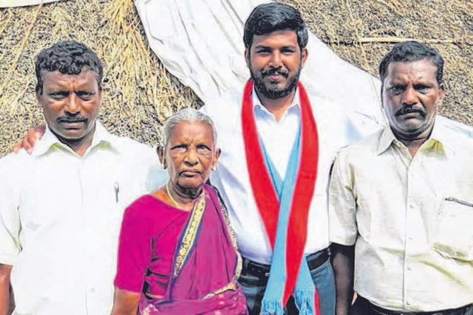 குன்னம் தொகுதி வேட்பாளர் ஷா நவாஸுடன் (நடுவில்) திருமாவள வனின் தாயாரும் சகோதரர்களும். படம்: இணையம்