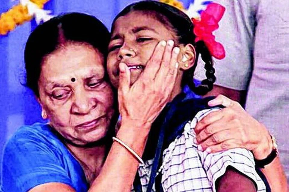மாணவி அம்பிகா கோயலை கட்டித் தழுவிய குஜராத் முதல்வர் ஆனந்தி பென். படங்கள்: இணையம்