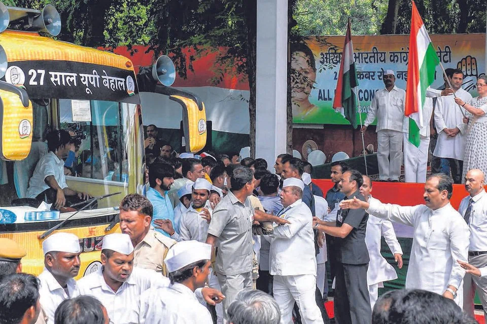 காங்கிரஸ் கட்சியின் முதல்வர் வேட்பாளர் ஷீலா தீட்சித்தின் தேர்தல் பிரசாரப் பயணத்தை அக்கட்சியின் தலைவர் சோனியா காந்தியும் துணைத் தலைவர் ராகுல் காந்தியும் நேற்று தொடங்கிவைத்தனர். '27 ஆண்டுகள் பேரழிவில் இருந்த உத்தரப்பிரதேசம்' என்று தேர்தல் பிரசாரப் பயணத்துக்கு பெயர் சூட்டப்பட்டுள்ளது. படம்: ஏஎஃப்பி