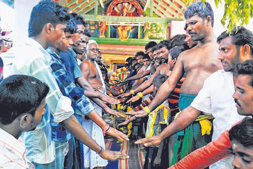 விரதம் இருந்து கோவிலில் உறுதிமொழி எடுத்துக் கொண்ட 150 இளையர்கள். படம்: ஊடகம்