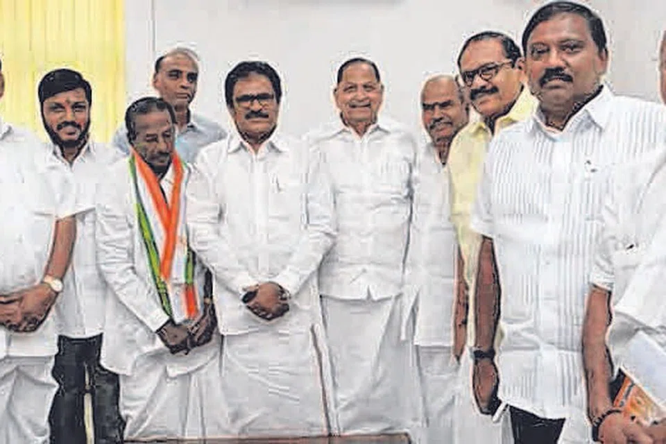 உள்ளாட்சித் தேர்தலில் போட்டியிடுவது குறித்து காங்கிரஸ் நிர்வாகிகளுடன் விவாதித்த தமிழக காங்கிரஸ் தலைவர் திருநாவுக்கரசர் (இடமிருந்து 5வது). படம்: தமிழக ஊடகம்