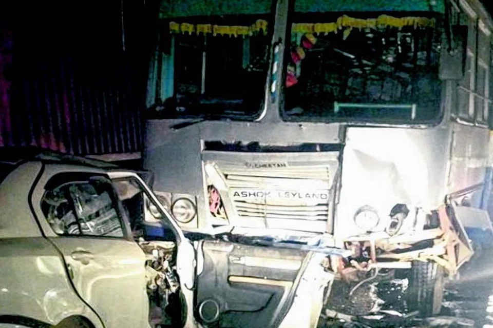 பஞ்சாப் மாநிலம் லூதியானா அருகே நேற்று விடியற்காலை நிகழ்ந்த சாலை விபத்தில் ஐந்து பேர் மாண்டனர். ஒரே குடும்பத்தைச் சேர்ந்த அந்த ஐவரும் லூதியானாவில் இருந்து காரில் சென்றனர். டேஹ்லோன் எனும் கிராமத்திற்கு அருகே சென்ற போது திடீரென்று தெருநாய் ஒன்று சாலையின் குறுக்கே ஓடியது. அதன் மீது மோதிவிடாமல் இருக்க காரை ஓரமாகத் திருப்பியபோது கட்டுப்பாட்டை இழந்த கார் சாலையோரம் வைக்கப்பட்டிருந்த தடுப்பில் மோதிய பின்னர் பேருந்துடன் நேருக்கு நேராக மோதியது. மோதிய வேகத்தில் காரில் இருந்த ஐவரும் அந்த இடத்திலேயே நசுங்கி மாண்டனர்.