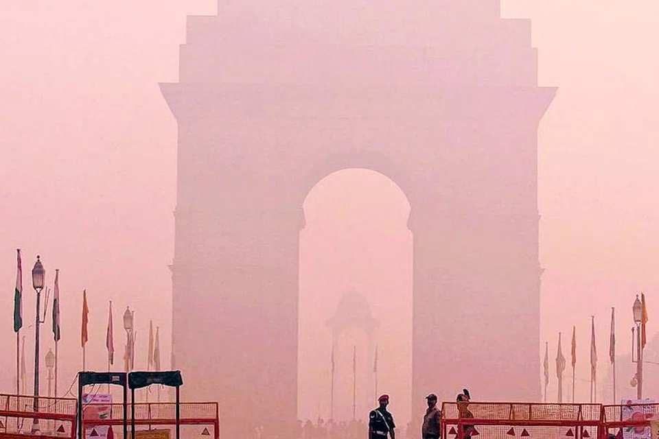 தீபாவளி நாளன்று டெல்லியில் காற்றின் தரம் பாதுகாப்பான அளவைவிட 42 மடங்கு அதிகமாக இருந்ததாகக் கூறப்பட்டது. இத்தகைய அபாயகரமான நிலையிலும் இந்தியா கேட் பகுதியில் பாதுகாப்புப் பணியில் ஈடுபட்டிருக்கும் போலிசார். படம்: ராய்ட்டர்ஸ்