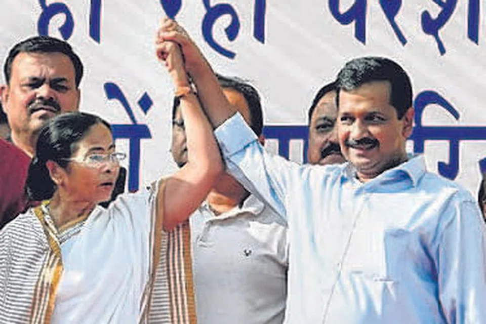 ரூபாய் நோட்டு செல்லாது என்ற பிரதமர் மோடியின் அறிவிப்பை எதிர்க்க மேற்கு வங்க முதல்வர் மம்தா பானர்ஜியும் டெல்லி முதல்வர் அரவிந்த கெஜ்ரிவாலும் திடீர் கூட்டணி அமைத்துள்ளனர். படம்: இந்திய ஊடகம்