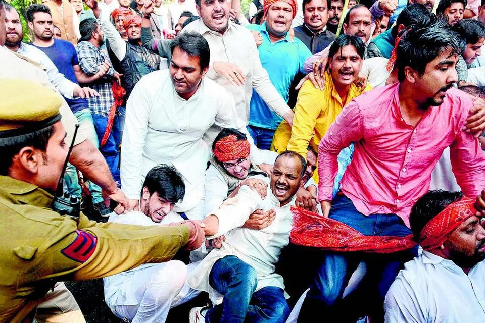 ரூபாய் நோட்டுகள் குறித்த பிரதமர் மோடியின் அறிவிப்பைக் கண்டித்து இளையர் காங்கிரஸ் கட்சியைச் சேர்ந்தவர்கள் நேற்று முன்தினம் டெல்லியில் போராட்டம் நடத்தியபோது போலிசார் தண்ணீர் பீய்ச்சி கூட்டத்தைக் கலைத்தனர். படம்: ஏஎஃப்பி