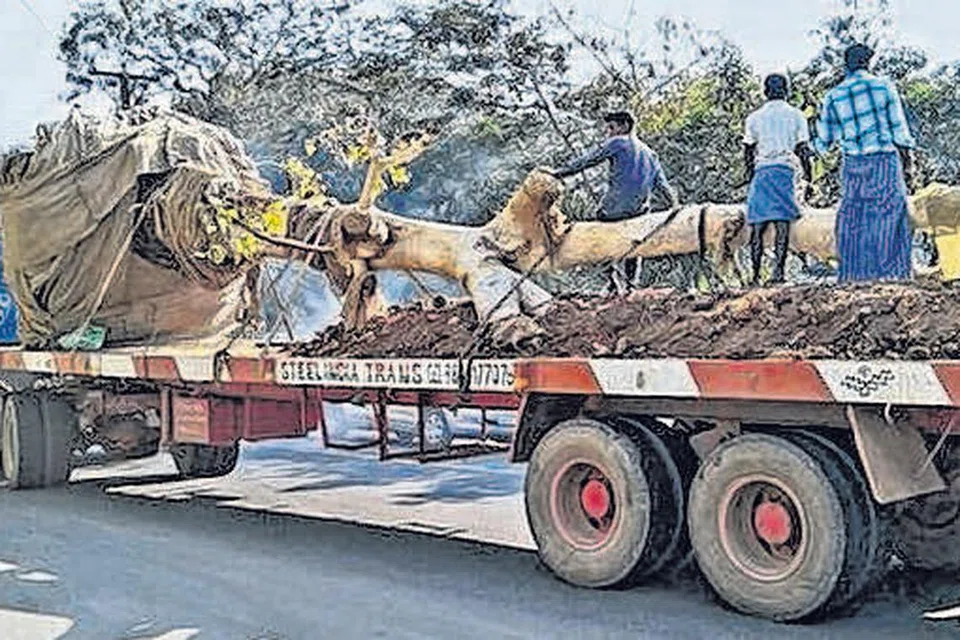 மறுநடவுக்காகக் கொண்டு செல்லப்பட்ட மரம். படம்: தகவல் ஊடகம்