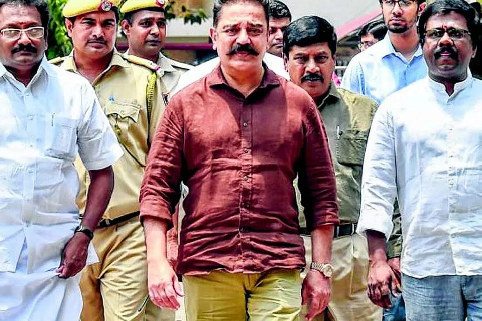 டெல்லியில் தலைமைத் தேர்தல் ஆணைய அலுவலகத்திலிருந்து வெளியேறி வந்த கமல்ஹாசனும் கட்சியின் தலைமை நிர்வாகிகளும். படம்: இந்திய ஊடகம்