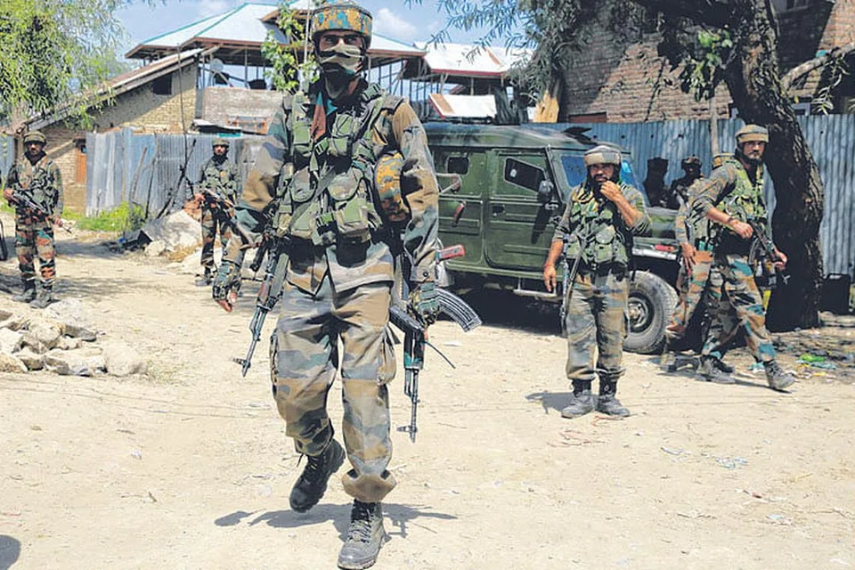 ஸ்ரீநகருக்கு வடக்கே சுமார் 40 கி.மீ. தொலைவில் இருக்கும் ஹாஜின் என்ற இடத்தில் வியாழக்கிழமை நடந்த துப்பாக்கிச் சண்டையில் இரண்டு பயங்கரவாதிகள் கொல்லப்பட்டனர். அந்த இடத்தில் இந்திய ராணுவ வீரர்கள் காவல் பணியில் ஈடுபட்டனர். படம்: இபிஏ