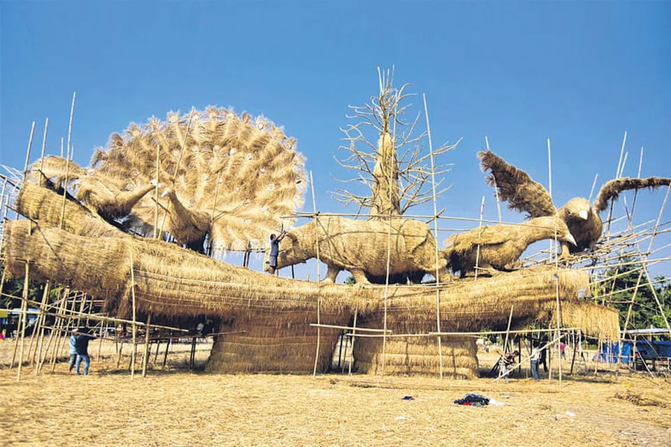 அசாமில் 'மாக் பிஹூ' என்ற பெயரில் அறுவடை திருவிழா கொண்டாடப்படுகிறது. அதன் ஓர் அங்கமாக மூங்கில், வைக்கோல் உள்ளிட்ட பொருட்களைக் கொண்டு கலைநயமிக்க தற்காலிக குடிசைகள் அமைப்பது அசாம் மக்களின் தொன்று தொட்ட பழக்கம். ஒவ்வோர் ஆண்டும் ஜனவரி மாதத்தில் கொண்டாடப்படும் இப்பண்டிகைக்காக இவ்வாண்டும் இவை கட்டப்பட்டுள்ளன. படம்: ராய்ட்டர்ஸ்