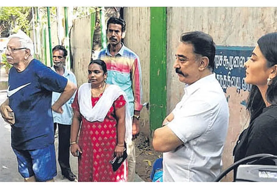 நடிகர் கமல்ஹாசன் தனது மகள் சுருதிஹாசனுடன் தேனாம் பேட்டையில் உள்ள பள்ளியில் வாக்கினைப் பதிவு செய்தார். முன்னதாக அங்கு வாக்குப்பதிவு இயந்திரம் பழுதடைந்ததால் காத்திருந்து தனது வாக்கை பதிவு செய்துவிட்டுச் சென்றார்.