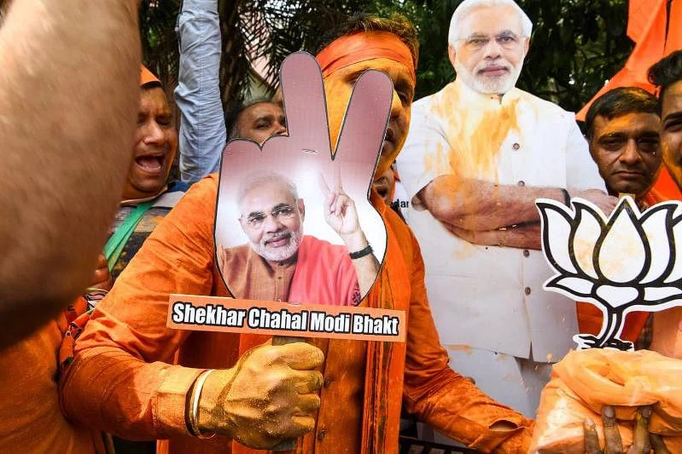 புதுடெல்லியிலுள்ள பாரதிய ஜனதாக் கட்சி தலைமையகத்தில் அந்தக் கட்சியின் முன்னிலையை தொலைக்காட்சி ஒளிவழிகள் அறிவித்துக்கொண்டிருக்கையில் கட்சி உற்சாகமடைந்த ஊழியர்கள் தங்கள் கொண்டாட்டத்தைத் தொடங்கினர்.