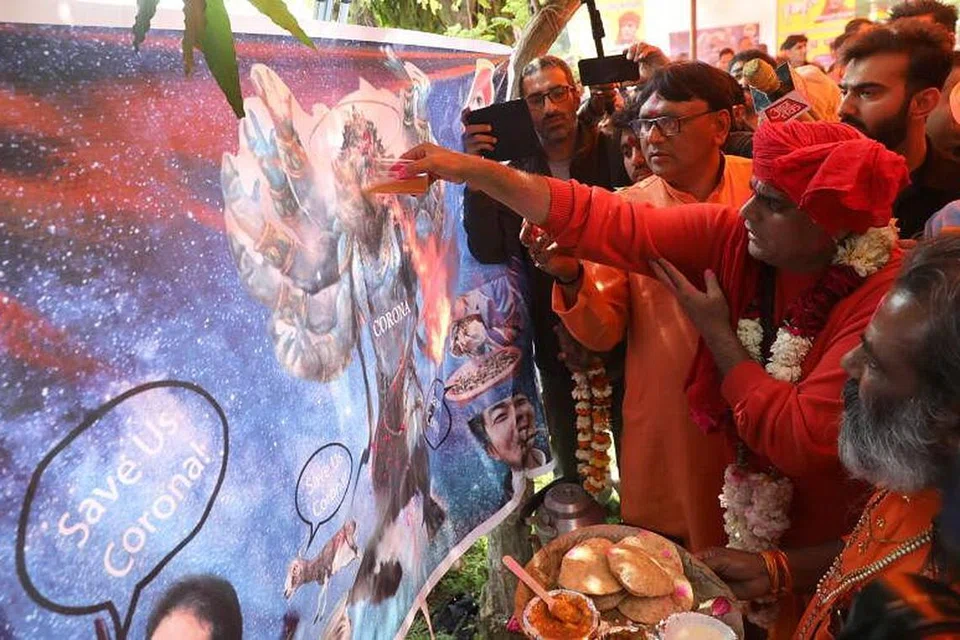 உலகமெங்கும் கரங்களை விரித்து கோரதாண்டவம் புரியும் கொரோனா கிருமித்தொற்றைத் தவிர்க்க அகில பாரத இந்து மஹாசபா என்ற அமைப்பு வித்தியாசமான ஏற்பாடு ஒன்றைச் செய்தது.