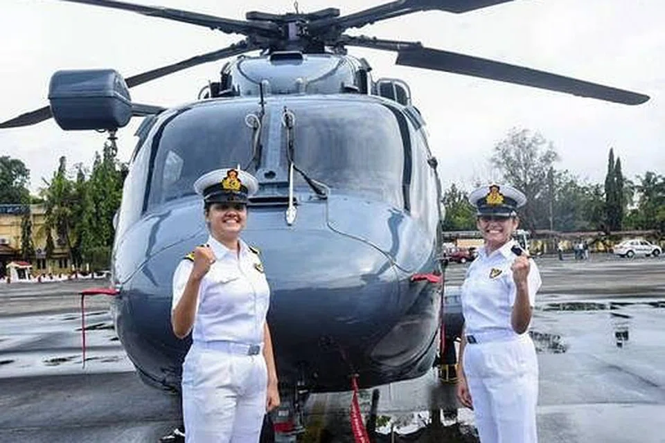 இந்திய கடற்படையைச் சேர்ந்த ரிதி சிங், குமுதினி தியாகி ஆகிய இரண்டு பெண் அதிகாரிகள் போர் ஹெலிகாப்டரை இயக்கத் தேர்வாகி உள்ளனர்.