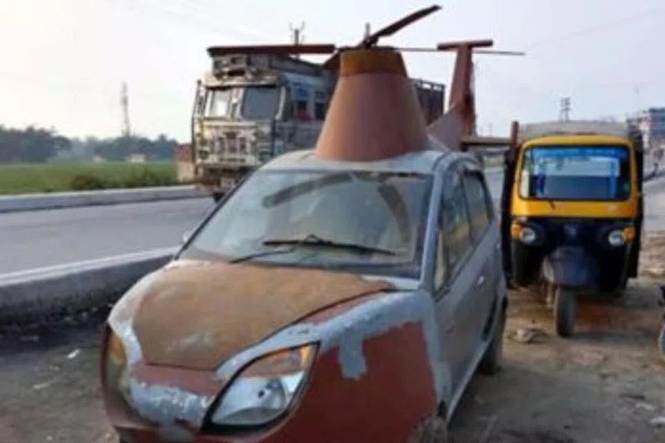 அவ்வளவு பெரிய தொகை இல்லாவிடில் என்ன செய்வது? கவலை வேண்டாம். இந்தியாவின் பீகார் மாநிலத்தைச் சேர்ந்த குடு ஷர்மாவிடம் சிறந்ததொரு தெரிவு உள்ளது. வாகனங்களைப் பழுதுபார்க்கும் வேலை செய்யும் அவர், தம்முடைய சொந்த பணத்தில் ரூ.200,000 செலவு செய்து 'டாட்டா நானோ' காரை ஒரு ஹெலிகாப்டராக மாற்றியமைத்தார்.