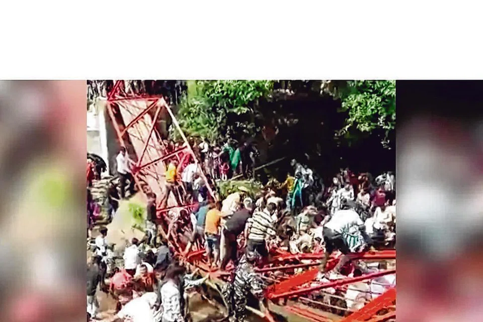 மக்கள் அதிகமான எண்ணிக்கையில் கூடியதால் பளுவைத் தாங்க முடியாமல் அந்தப் பாலம் இடிந்து விழுந்ததாக அதிகாரிகள் கூறினர்.