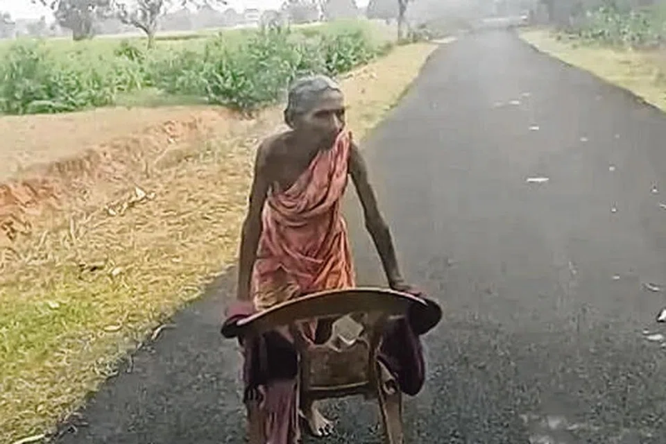 நப்ரங்பூர் பகுதியில் உள்ள வங்கிக்கு கொளுத்தும் வெயிலில் வெறுங்காலுடன் ஒரு உடைந்த நாற்காலியின் உதவி யுடன் அவர் நடந்து சென்றதாக இண்டியா டுடே தகவல் தெரிவித்தது.