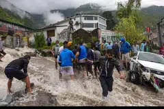 மண்டி மாவட்டத்தின் ஆட் அருகில் உள்ள கோடிநாலாவில் பிரஷார் ஏரியில் ஏற்பட்ட வெள்ளத்தால் பாகி பாலம் அருகே ஏராளமானோர் சிக்கித் தவிக்கின்றனர். அவர்களை மீட்கும் பணி முடுக்கிவிடப்பட்டுள்ளதாக அதிகாரிகள் தெரிவித்துள்ளனர்.
