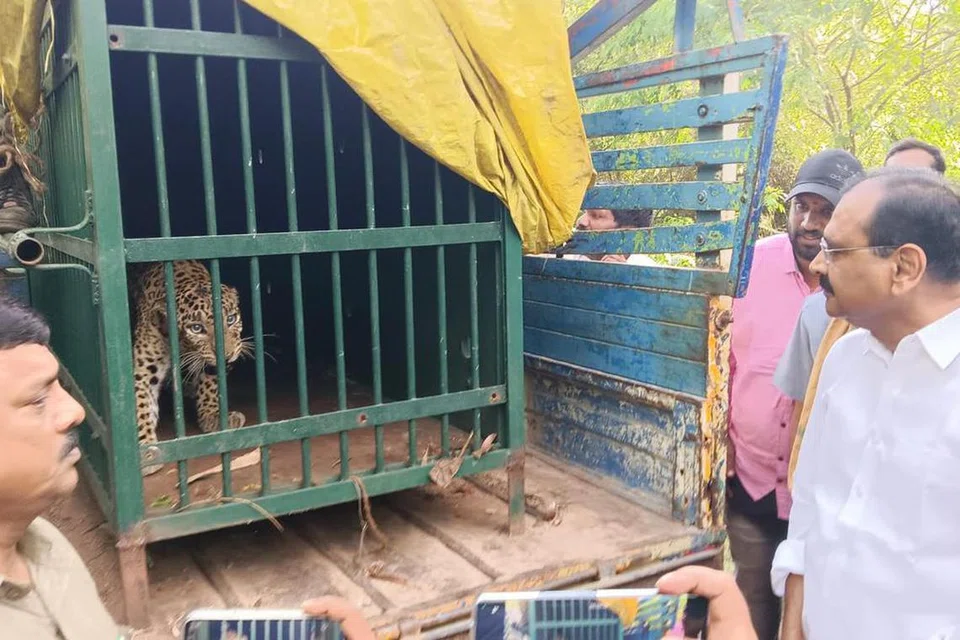 கூண்டில் சிக்கிய இந்த 3 வயது பெண் சிறுத்தையை வனத்துறையினர் ஸ்ரீ வெங்கடேஸ்வரா உயிரியல் பூங்காவுக்கு கொண்டு சென்று ஒப்படைத்தனர். கடந்த 75 நாட்களில் பிடிபட்ட 5-வது சிறுத்தை இது என்று வனத்துறையினர் கூறினர்.