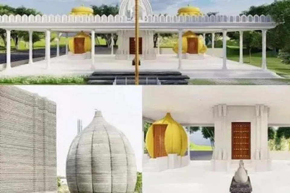 கோபுரங்களும் கருவறைகளும் ‘3டி’ எனப்படும் முப்பரிமாண அச்சிடல் முறையில், உள்நாட்டுப் பொருள்களையும் மென்பொருளையும் பயன்படுத்தி உருவாக்கப்பட்டுள்ளன.