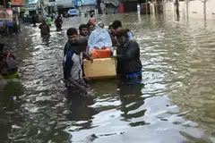 காற்று நிரப்பப்பட்ட படகுகளில் கயிறுகளைக் கொண்டு மக்களை மீட்டுவரும் நிலையில், மீட்புப் பணியினர் பாதி மூழ்கிய வாகனங்களைக் கடந்து ஆழமான வெள்ளப்பெருக்கைக் கடந்து செல்லும் காட்சிகளை உள்ளூர் ஊடகங்கள் காட்டி வருகின்றன.