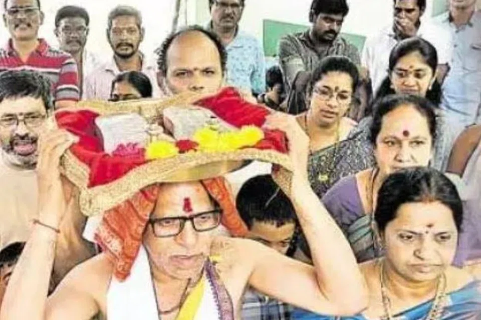 அயோத்தி சென்றடையும் ஸ்ரீனிவாஸ் கடவுள் ராமருக்கு காணிக்கையாக கொண்டுவந்த தங்க காலணிகளை உத்தரப் பிரதேச முதலமைச்சர் யோகி ஆதித்யநாத்திடம் வழங்குவார் என்று தெரிவிக்கப்பட்டது.