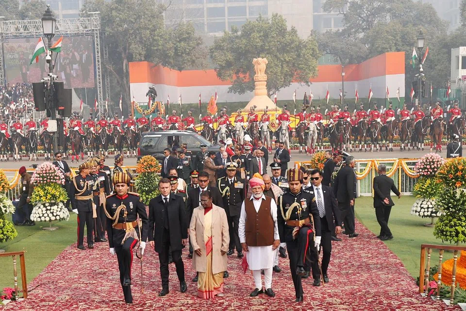 நாட்டின் 75வது குடியரசு தின விழாவை முன்னிட்டு டெல்லியில் நடைபெற்ற சிறப்பு அணிவகுப்பில் தலைமை விருந்தினராக பங்கேற்க பிரான்ஸ் அதிபர் இமானுவல் மெக்ரோனுக்கு அழைப்பு விடுக்கப்பட்டது. அவரை நேற்று (வெள்ளிக்கிழமை) குடியரசு தின விழாவுக்கு குடியரசுத் தலைவர் திரெளபதி முர்மு தன்னுடன் குதிரைகள் பூட்டிய சாரட் வண்டியில் அழைத்து வந்தார். சாரட் வண்டியின் முன்புறமும் குதிரையில் வீரர்கள் அணிவகுத்து வந்தனர்.