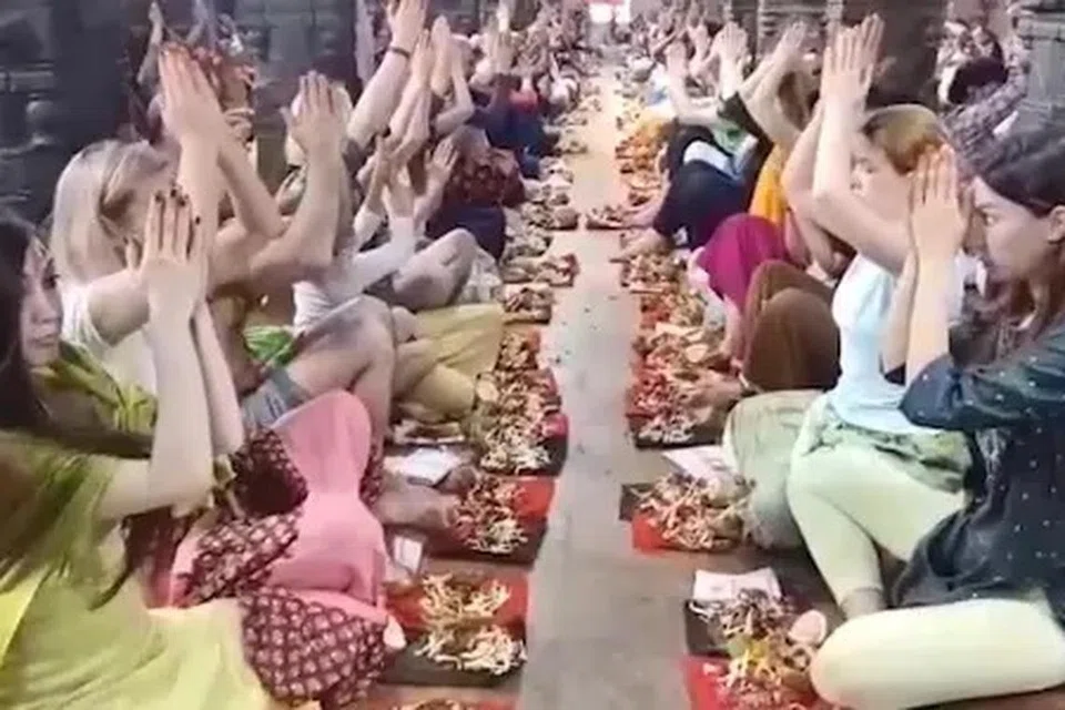 இக்கோயிலின் பிரகாரத்தில் 30 ரஷ்ய ஆண்-பெண்கள் வரிசையாக தரையில் அமர்ந்தனர். அதைத்தொடர்ந்து மந்திரங்கள் ஓதப்பட்டது. அப்போது பயபக்தியுடன் அவர்கள் வழிபாடு செய்தனர்.
