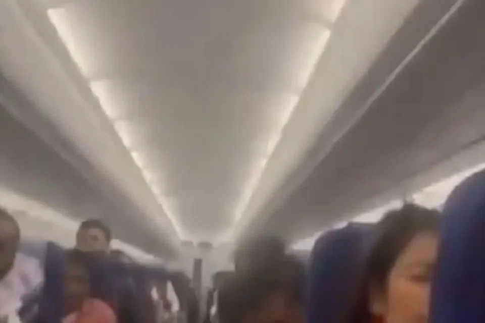 அப்போது விமானத்தில் இருந்த பயணிகள் அதிர்ச்சியடைந்ததைக் காட்டும் காணொளி சமூக ஊடகங்களில் அதிகமாகப் பகிரப்பட்டது.