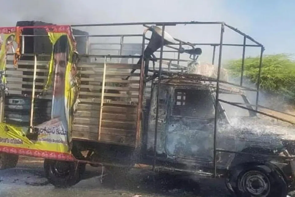 திருப்பதி: தெலுங்கு தேசக் கட்சியின் தேர்தல் பிரசார வாகனம் ஒன்றுக்கு ஞாயிற்றுக்கிழமை அதிகாலையில், சிலர் தீ வைத்துவிட்டு தப்பி ஓடினர். அதிர்ஷ்டவசமாக அதில் இருந்த ஓட்டுநர் உயிர் தப்பினார்.