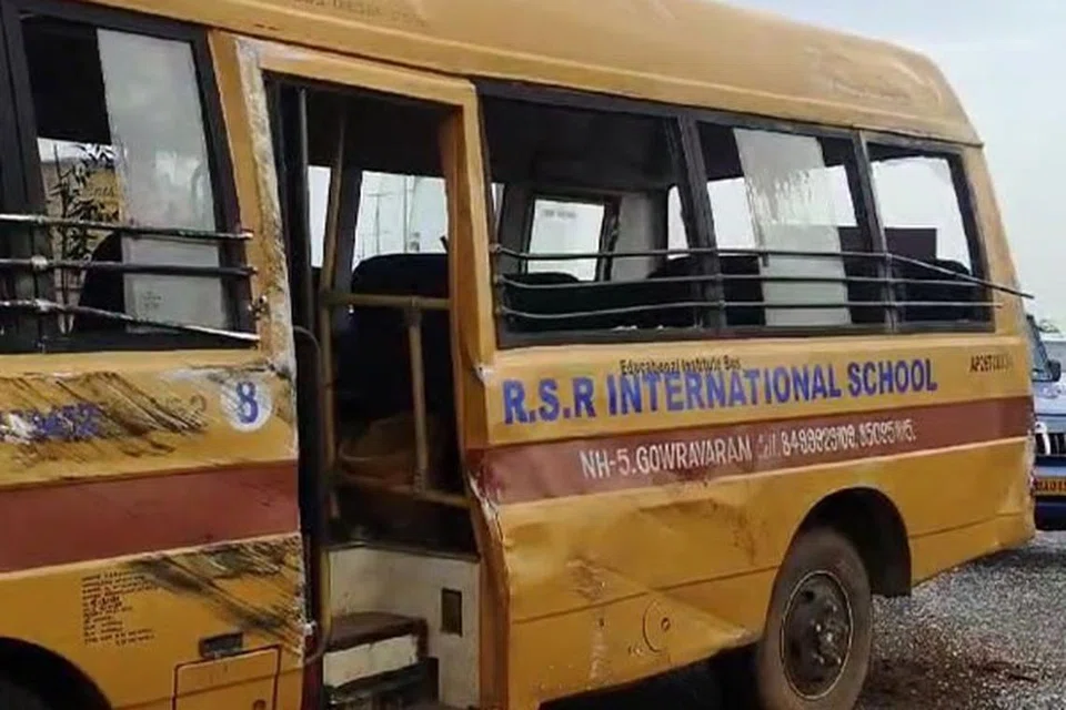 நெல்லூர் மாவட்டம், காவாலியில் 16வது தேசிய நெடுஞ்சாலையில் இந்த அசம்பாவிதம் நடந்துள்ளது. பேருந்து ஆர்எஸ்ஆர் அனைத்துலகப் பள்ளிக்குச் சொந்தமானது என்றும் காவலர்கள் தெரிவித்தனர்.
