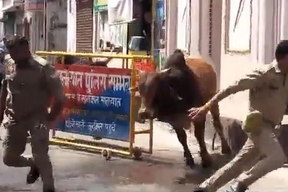 இந்நிலையில், சாலையில் முட்டி மோதிக்கொண்டிருந்த இரு காளைகளைப் பிரித்துவிட முயன்றபோது அவை விரட்டியதால் காவலர்கள் தெறித்து ஓடிய சம்பவம் சம்பல் மாவட்டத்தில் நிகழ்ந்துள்ளது.