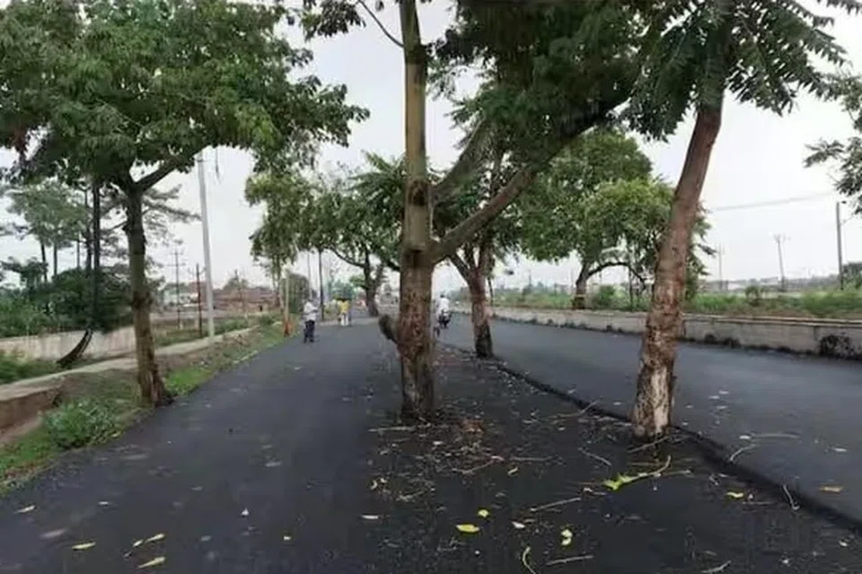 அங்கு முக்கியச் சாலையின் நடுவே உள்ள மரங்களை வெட்டாமல், நூறு கோடி ரூபாய் செலவில், புதிய சாலை போடப்பட்டுள்ளது. ஆனால், அச்சாலையின் நடுவே உள்ள மரங்கள் எதுவும் வெட்டப்படவில்லை.