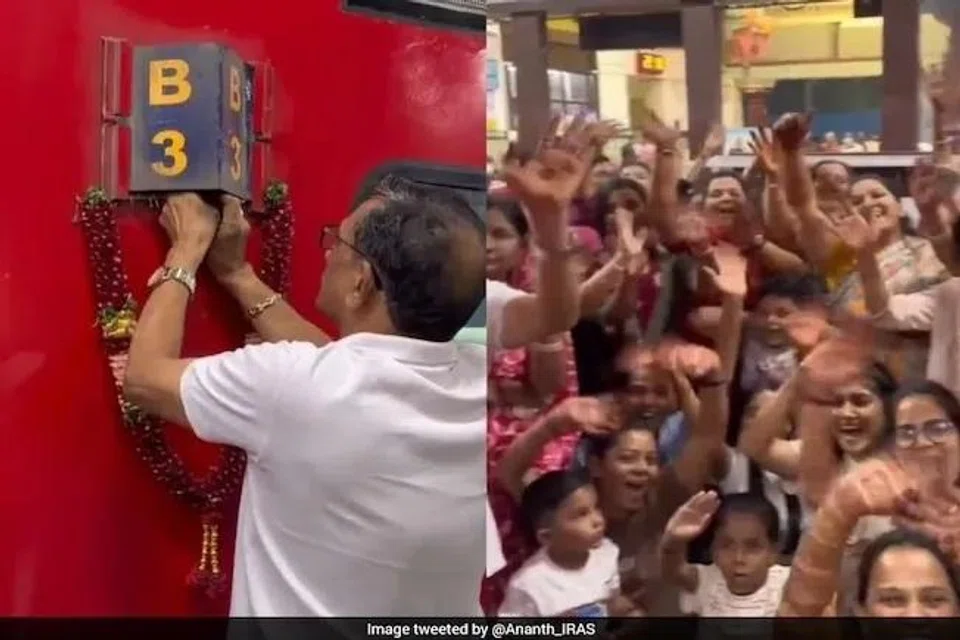 சமூக ஊடகங்களில் பரவிவரும் அந்தக் காணொளியில், ரயில் பெட்டியின் நுழைவாயில் பூக்களால் அலங்கரிக்கப்பட்டுள்ளது. குடும்பத்தைச் சேர்ந்த ஒருவர் வாசலில் நின்று விருந்தினர்களை வரவேற்கிறார்.