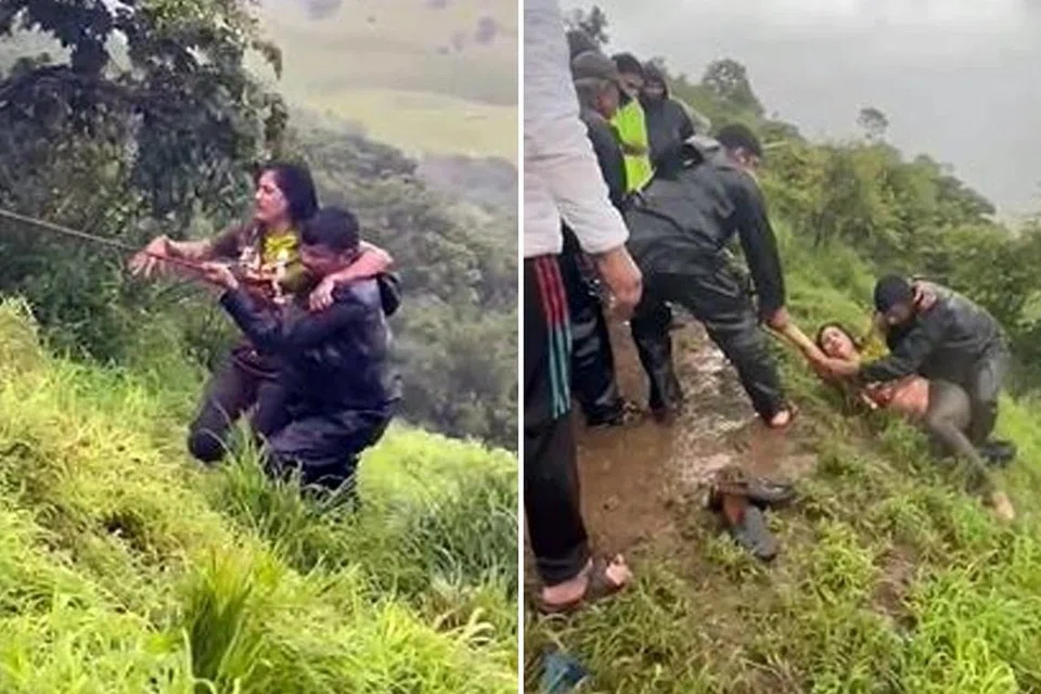 அப்போது அவர்களில் ஒருவரான நஸ்ரீன், 29, கால் தவறி, 60 அடி ஆழப் பள்ளத்தாக்கில் விழுந்ததாகக் கூறப்படுகிறது.