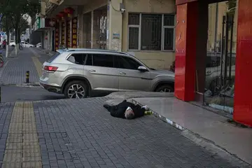 கொரோனா கிருமித் தொற்றின் மையம் என்று கூறப்படும் வூஹானில் முகக்கவசம் அணிந்தபடி ஆடவர் ஒருவர் கடை