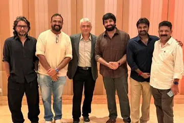 நடிகர் அஜித்குமாருடன் இயக்குநர்கள் ஆதிக் ரவிச்சந்திரன், விஷ்ணு வர்தன் உள்ளிட்டோர் இருக்கும்