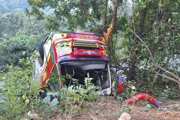 அமராவதி: அதிகாலை வேளையில் பள்ளத்தாக்கில் கவிழ்ந்து பேருந்து விபத்துக்குள்ளான சம்பவத்தில் ஒன்பது