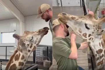 கால்நடை மருத்துவர் ஒருவர் ஒட்டகச்சிவிங்கிக்கு சிகிச்சை அளிக்கும் காணொளி இணையத்தில் பலரை