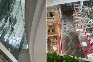 புவன விஸ்தா வட்டாரத்தில் உள்ள த ஸ்டார் விஸ்தா கடைத்தொகுதியில் கண்ணாடித் தகடு ஒன்று மேலிருந்து