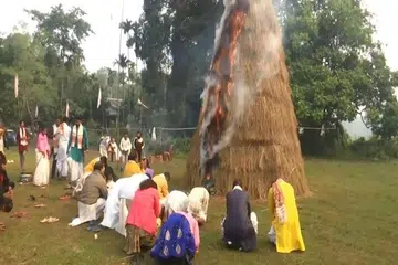 கௌகாத்தி: ஆண்டுதோறும் பாரம்பரியமாகக் கொண்டாடப்படும் அறுவடைத் திருவிழாவான மாக் பிஹுவை அசாம் மக்கள்
