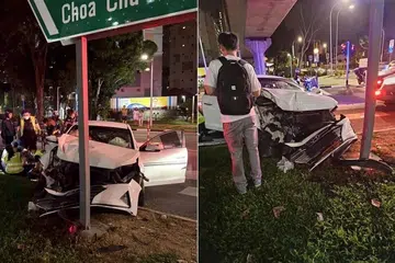 தெக் வாய் வட்டாரத்தில் கார் ஒன்று சாலை சமிக்ஞைமீது மோதி விபத்துக்குள்ளானது.