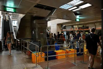 புதன்கிழமை (செப்டம்பர் 17) காலை ராஃபிள்ஸ் பிளேஸ் ரயில் நிலையத்தின் சில மேற்கூரைகளில் நீர்க்கசிவு